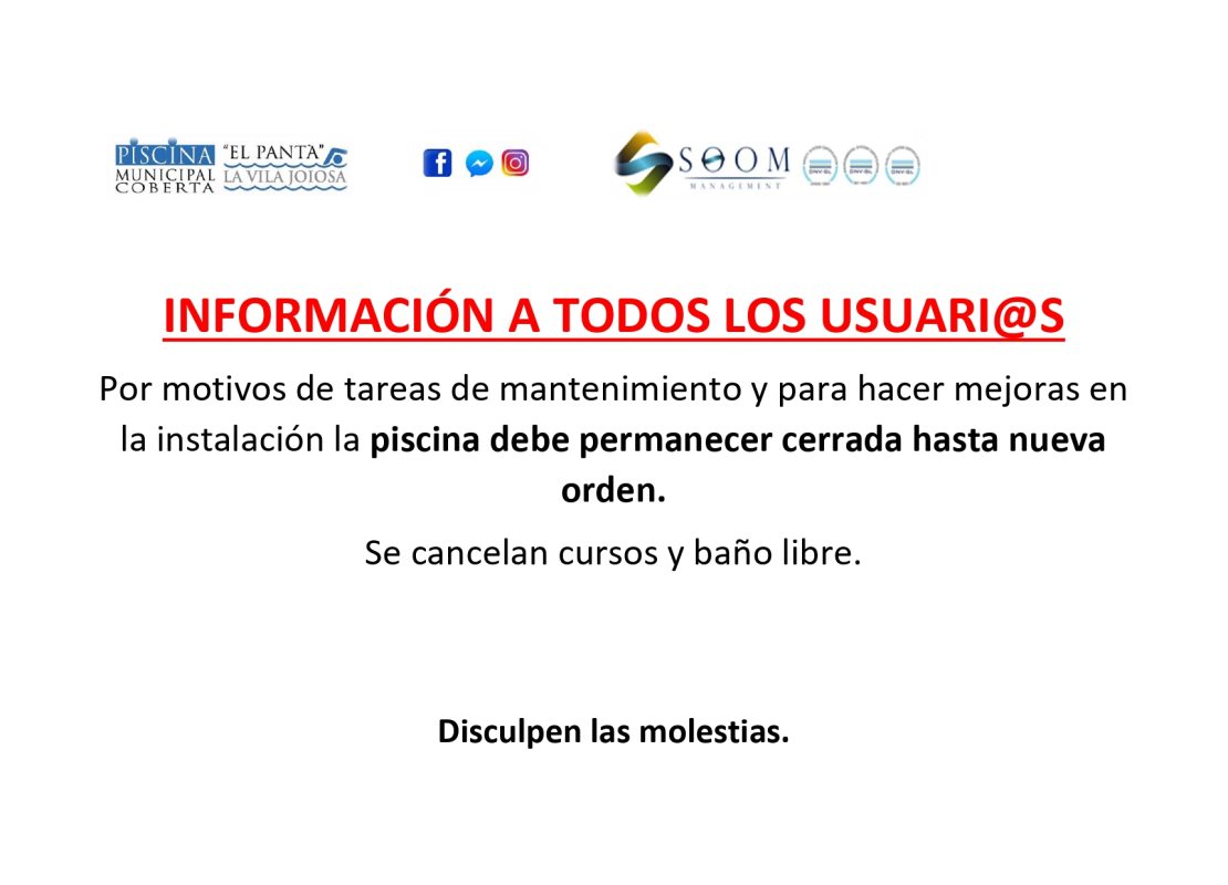 PISCINA CERRADA POR LABORES DE MANTENIMIENTO