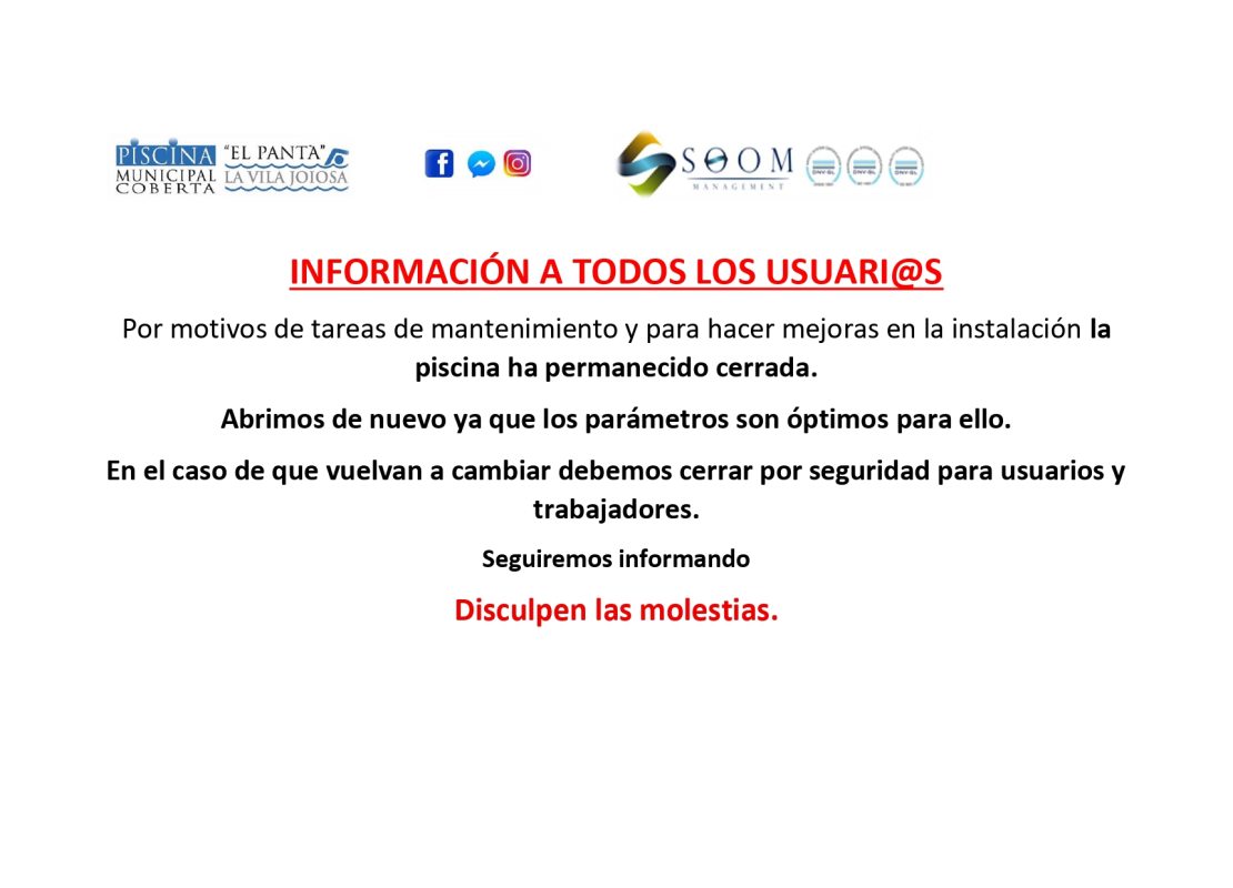 REAPERTURA DE PISCINA CUBIERTA DE VILLAJOYOSA